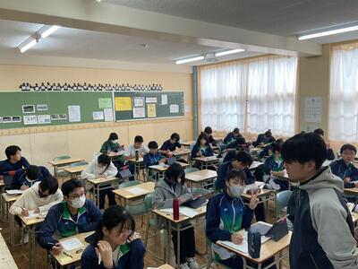 最後に、教室を回ると1年2組の皆さんが英語を頑張っていました。