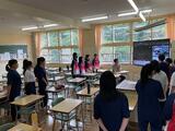 昼休み、3階から手を振ってくれる生徒たち。5時間目、廊下で笑顔をみせてくれる生徒たち。