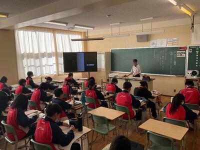 本日、5時間目・6時間目に静岡県森町立森中学校との交流授業を行いました。