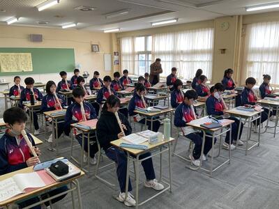 みんな真剣にアルトリコーダーを吹いています。