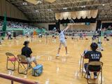 体育館では、バドミントン部が先輩たちの後に続こうと真剣に練習に取り組んでいました。