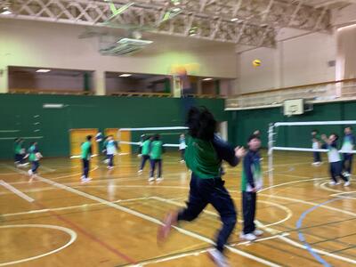 今年最後の授業の3年2組。バレーボールを楽しそうに行っていました。