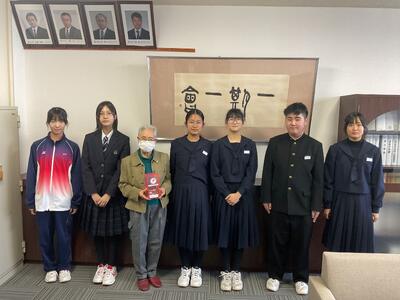 本日、昼休みに社会福祉協議会の方3名にお越しいただき、赤い羽根募金の贈呈を行いました。