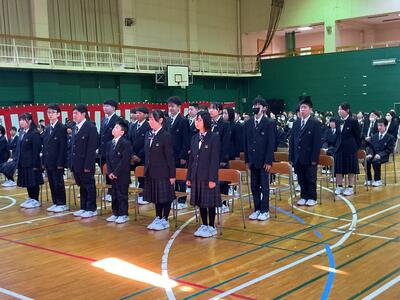 本日、入学式を終えて、元気に登校してきた1年生。疲れもあると思いますが、とても頑張っています。4時間目、2組の教室では、担任の仁木教諭の話をしっかりと聞いている様子。とても立派です。1組では、担任の西谷教諭と学級役員などの係決めを行っていました。司会は1組の生徒が行っていました。時間内に決めることができてみんなで大きな拍手。盛り上がっていました。こちらもとても立派でした。